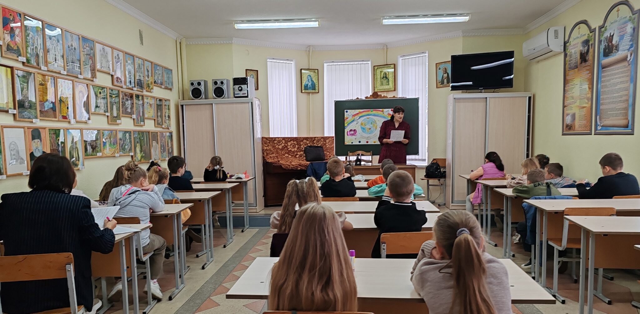 Затем педагоги рассказали, о чём православные люди молятся Пресвятой Богородице, обратив внимание, что очень важно на планете беречь мир, который даёт возможность всем людям Земли спокойно жить, учиться, работать.