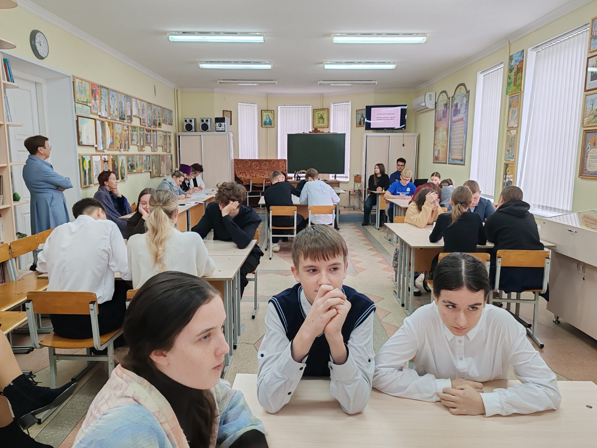 Все остальные этапы прошли в сопровождении компьютерной презентации  в учебном  классе Серафимовской воскресной школы.