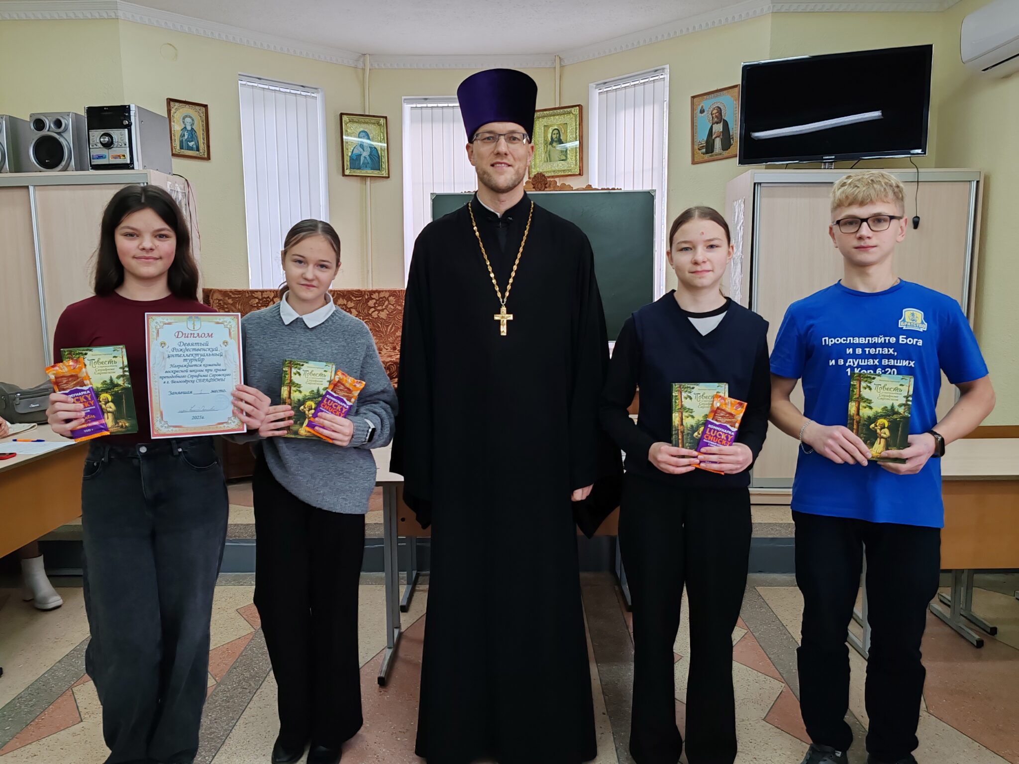 В рамках сотрудничества Министерства образования Республики Беларусь и Белорусской Православной Церкви в г.Белоозёрске  6  декабря 2025 года в здании воскресной школы прихода храма преподобного Серафима Саровского в г.Белоозёрске прошёл Девятый  Рождественский интеллектуальный турнир среди учащихся учебных учреждений города. Организатором турнира выступила религиозная община «Православный приход храма преподобного Серафима Саровского в г.Белоозёрске».