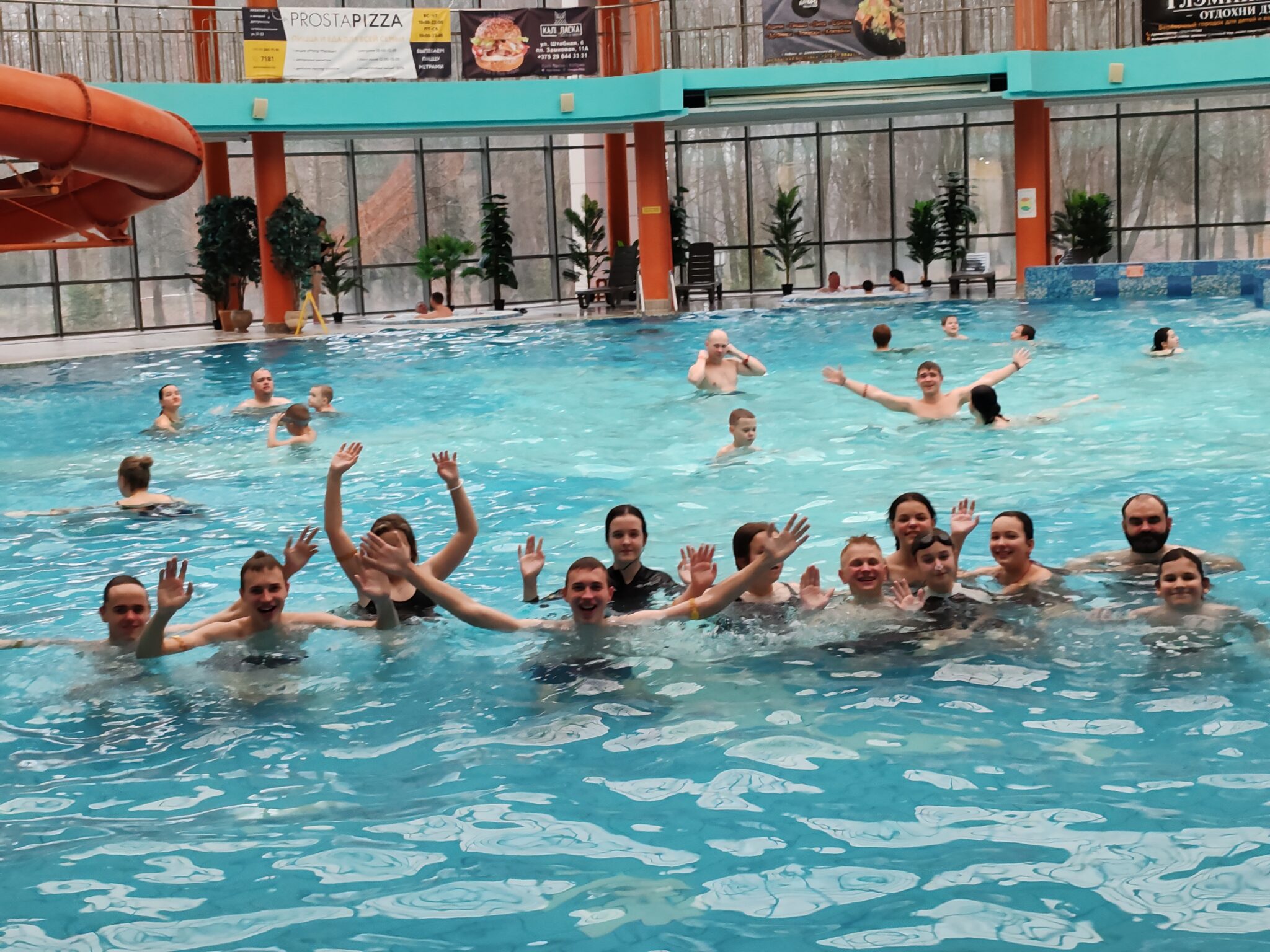 Продолжилась поездка посещением кобринского аквапарка, и это стало настоящим подарком для учащихся в дни зимних каникул, а закончилось путешествие щедрым угощением в местной пиццерии.
