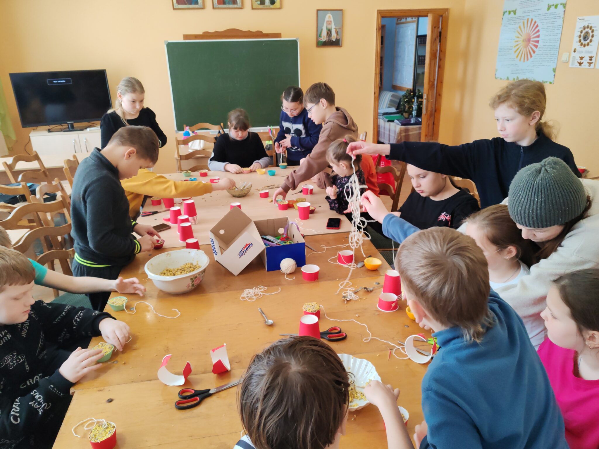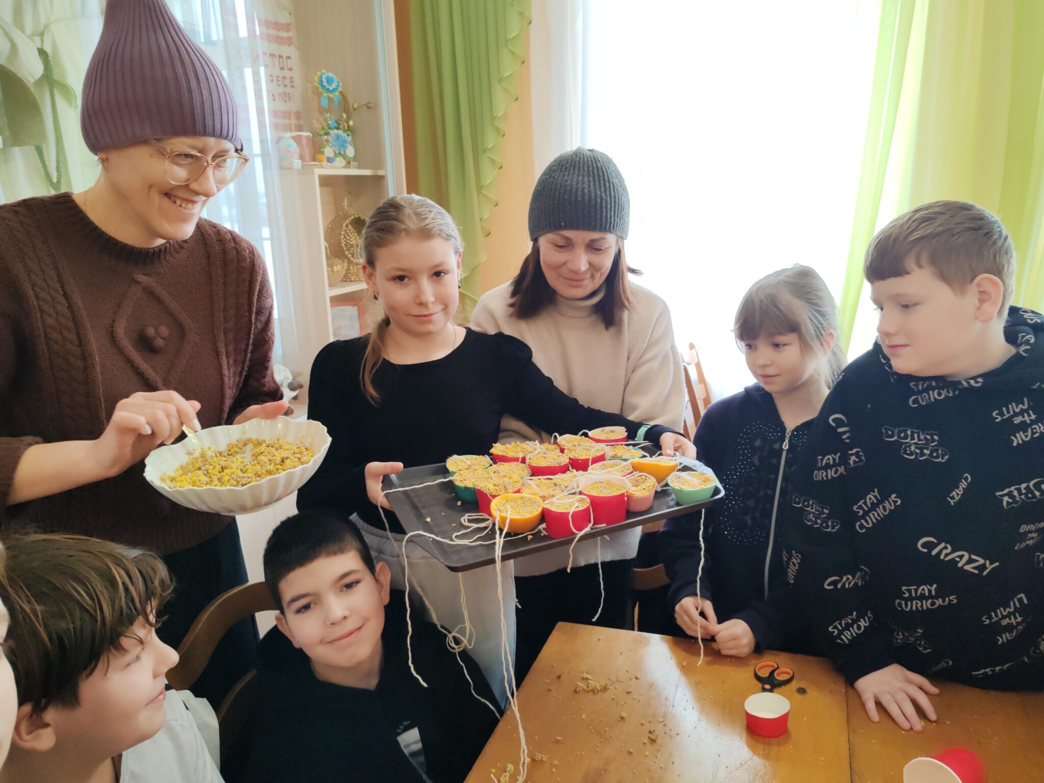 17 января 2026 года педагоги Серафимовской воскресной школы Ситникова Ольга Васильевна, Гондюк Татьяна Ивановна, Беринчик Яна Сергеевна, Малявка Лариса Владиковна с учащимися младших классов из зёрен и семечек сделали с детьми экологические кормушки. Педагоги рассказали детям о том, как непросто птицам под снежными сугробами добывать корм, объяснили, чем правильно подкармливать пернатых.