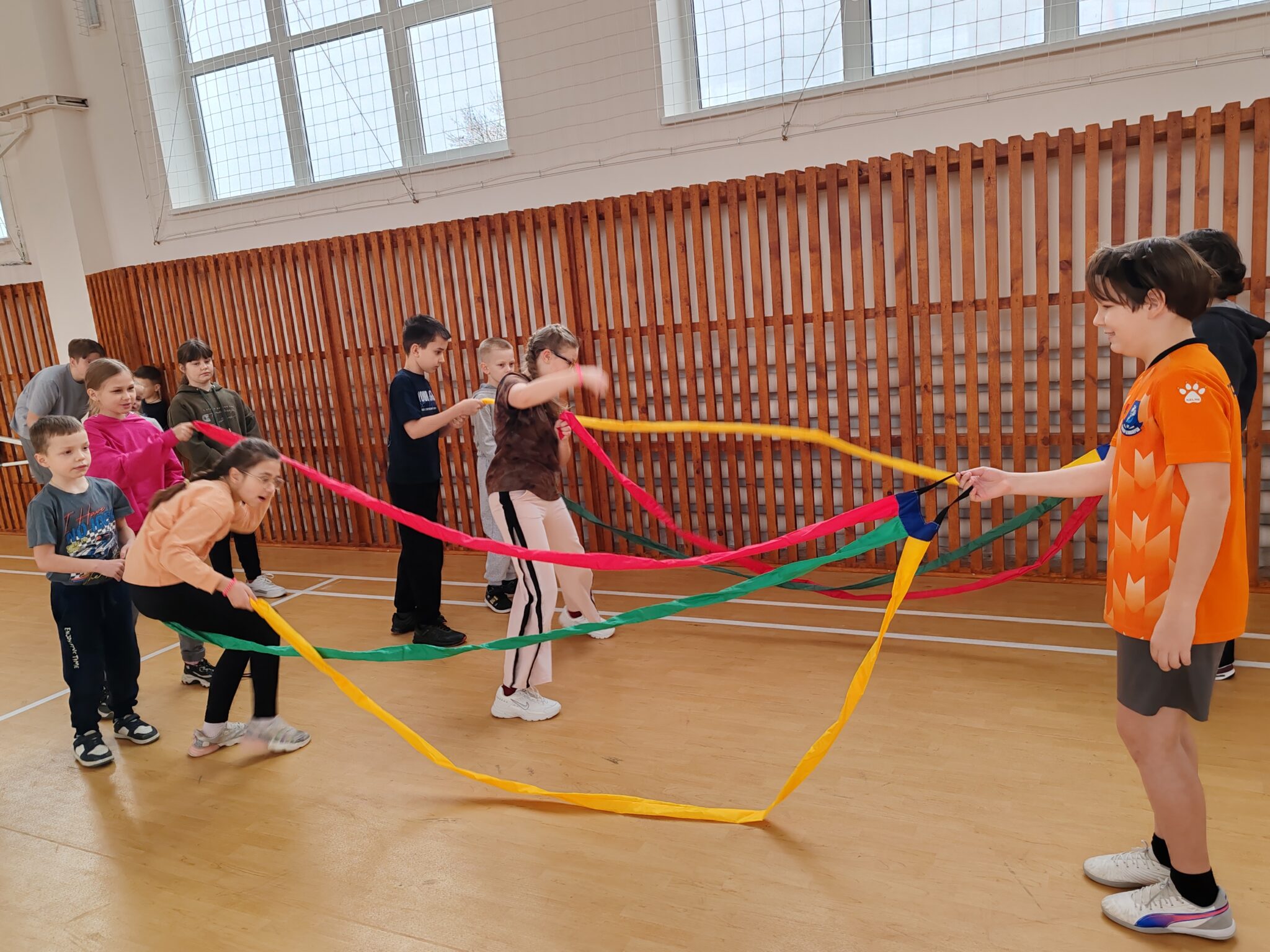 На четвёртой  станции «Разморозка» участники игры  избавляли   весну от зимних «сосулек». Дети запрыгивали в обручи, хватали стойки-сосульки и убирали их в другое место.