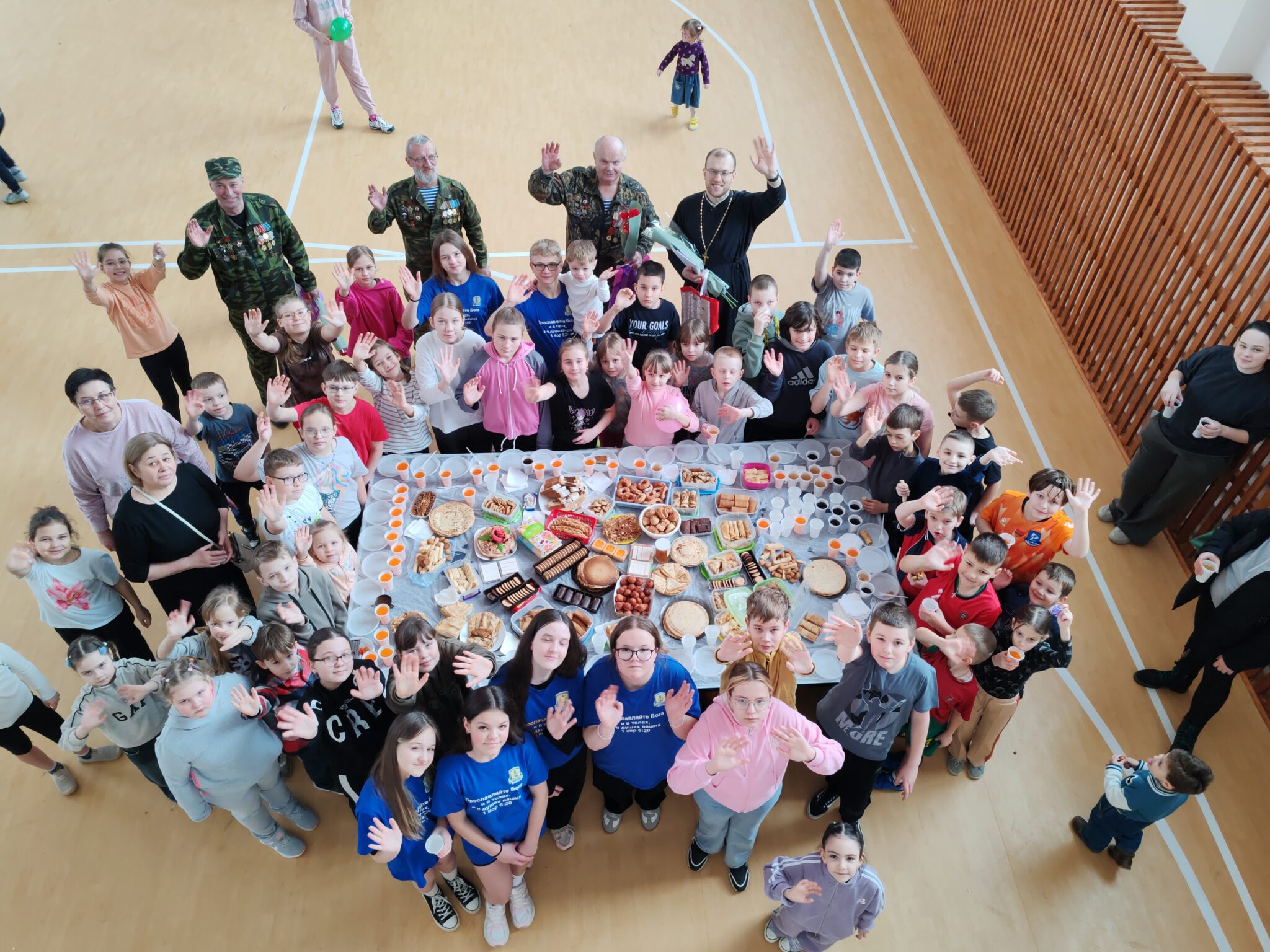 На спортивный праздник были приглашены друзья Серафимовской воскресной школы  воины-интернационалисты— участники  Белоозёрской городской организации ОО «Белорусский союз ветеранов войны в Афганистане». На праздник пришли руководитель организации Прибытко Виктор Николаевич,  а также члены организации Сеч Борис Константинович, Мацкевич Вячеслав Станиславович, Кузьмич Вячеслав Васильевич.  Воспитанники  воскресной школы поздравили  воинов-интернационалистов с Днём защитника Отечества, вручили им открытки, сделанные своими руками, и букеты цветов.
