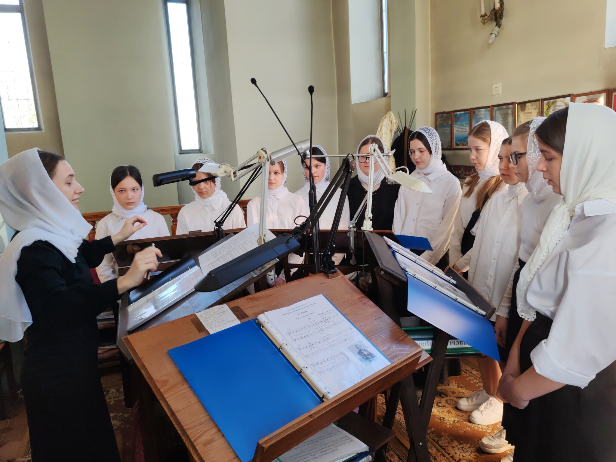 Также иерей Андрей Русавук и его жена матушка Наталья разучили с выпускниками Серафимовской воскресной школы, которые ныне являются членами приходского молодёжного движения, богослужебные песнопения, и на литургии все песнопения исполнял детский хор под руководством матушки Натальи Русавук. По окончании службы детский хор красиво исполнил известное песнопение «Вера вечна, вера славна».