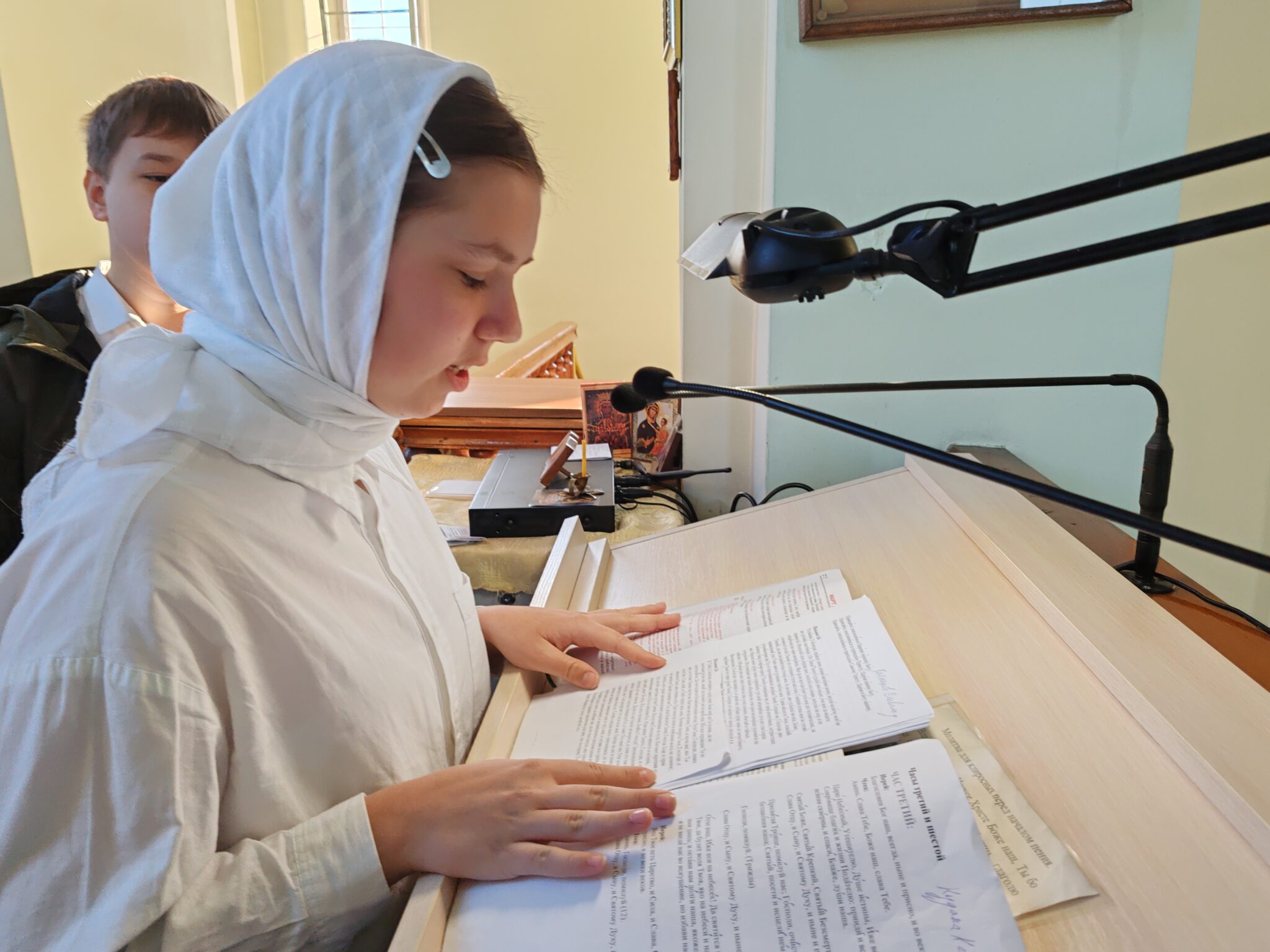 Ученики воскресной школы готовились к детской службе заранее, и под руководством преподавателя «Школы юных алтарников и чтецов» клирика храма иерея Андрея Русавука освоили чтение утренних часов на литургии.