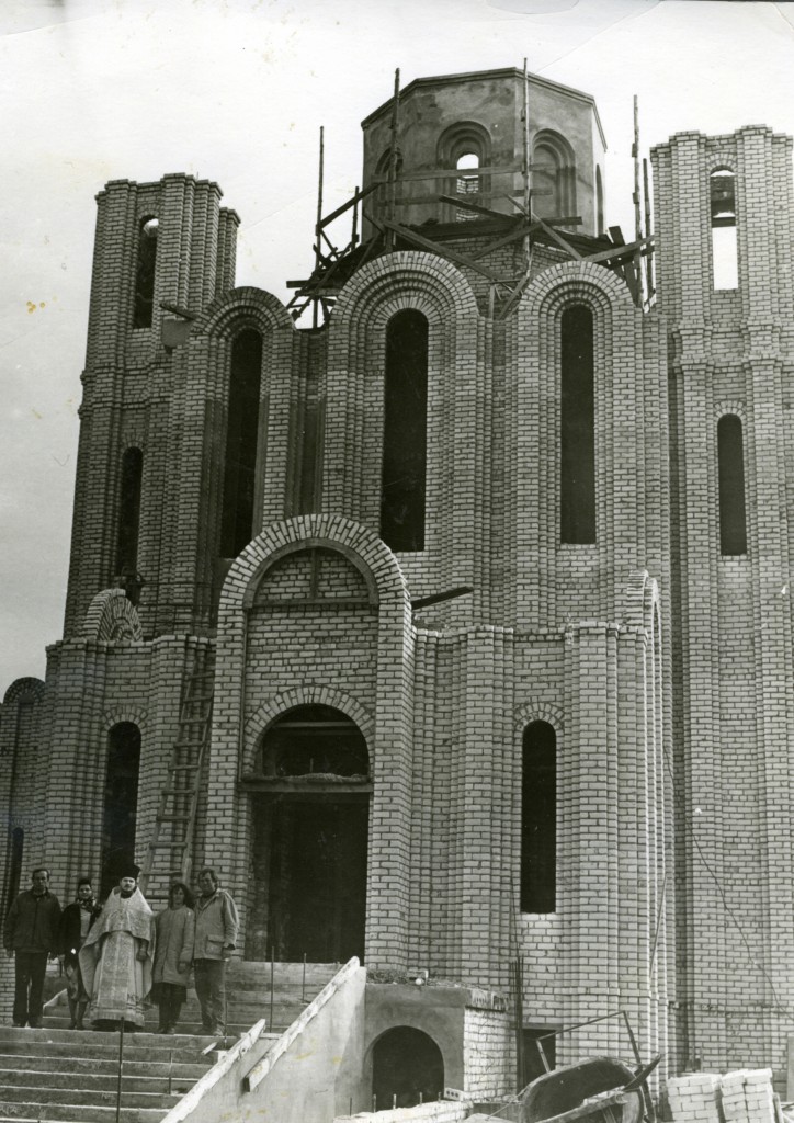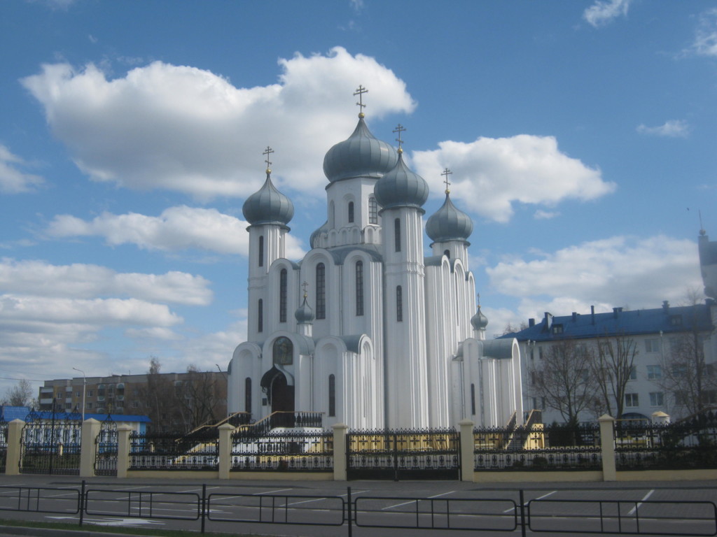 А 18 августа того же года первым настоятелем строящегося храма был назначен протоиерей Георгий Шевцов. Он поразил всех своей работоспособностью, самоотверженной отдачей делу, которому служит, большой любовью к людям, искренностью, добротой, и вместе с тем – непреклонностью в вопросах веры. Он сумел привлечь к делу строительства храма многих руководителей предприятий и горожан. Уже в1993 г. был освящен нижний храм в честь святого великомученика Георгия Победоносца. За год с небольшим по проекту архитектора Л. В. Макаревича (г. Барановичи) был возведен двухъярусный храм в основании в виде креста, в русском стиле с элементами византийского. Таких ускоренных темпов строительства Беларусь еще не знала…